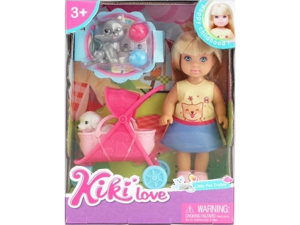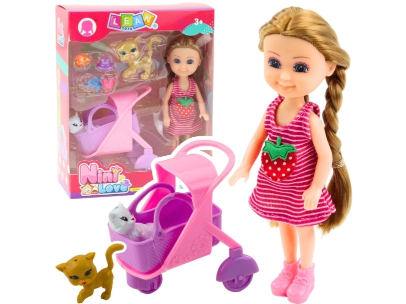 Minidocka Med Tillbehör Barnvagn Katter Rosa Docka