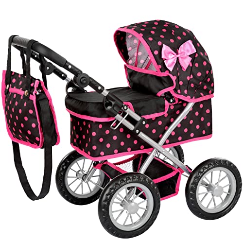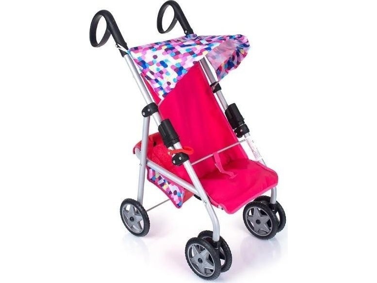 Bayer Chic 2000 – Dockvagn Mika, 2-i-1 kombidockvagn för barn från 4 till 8 år, barnvagn för dockor upp till 52 cm, konfetti rosa