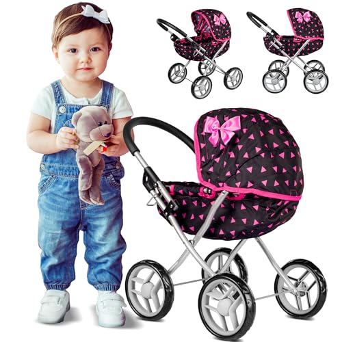 Kinderplay Dockvagn från 2 år, barnvagn dockor – lätt och stabil konstruktion, barndockvagn från 3 år, justerbar höjd från 33 till 63 cm, KP0261T