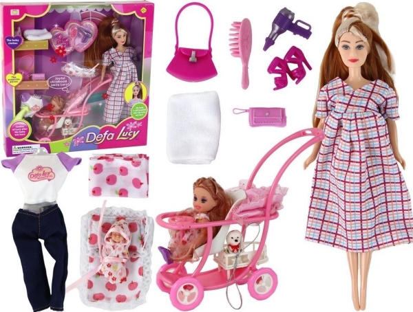 Leantoys Lucy Docka Gravid Baby Barnvagn Långt Brunt Hår