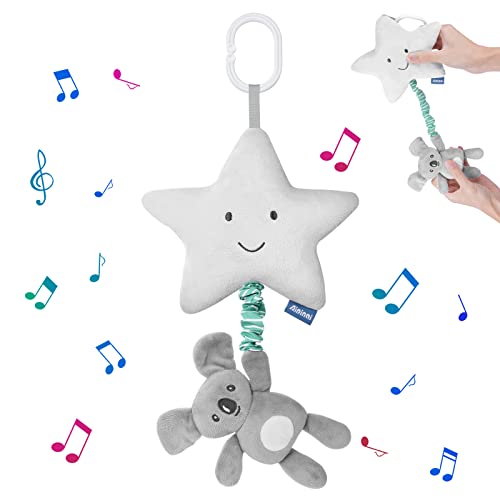 Vicloon Baby Plysch Barnvagn Leksak, Barnvagn Leksak med Musik Baby gosedjur leksak Hängande skalllerleksaker för pojkar och flickor 6 månader+, bästa födelsedagspresent