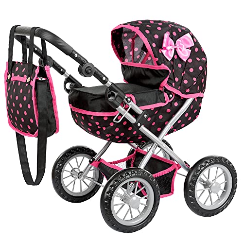 Bino dockvagn, leksak för barn från 3 år, barnleksaker (barnvagn tillverkade av pulverbelagt "silver" med mörkblått skumhandtag, 3 hjul), rosa