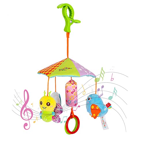 DoerSpace Barnvagn leksaker för sängmobil, mjuk hängande skallra leksak för barnvagn/buggy med klämmor, spädbarn sensoriska leksaker från barnvagn för småflickor och pojkar, passar åldrarna 0~24
