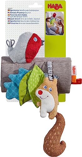 HABA Leksak skogsvänner - ekorre-skramlande tvättbart tyg - A häng på Mysig eller barnvagn-306927, 306927, färgglad