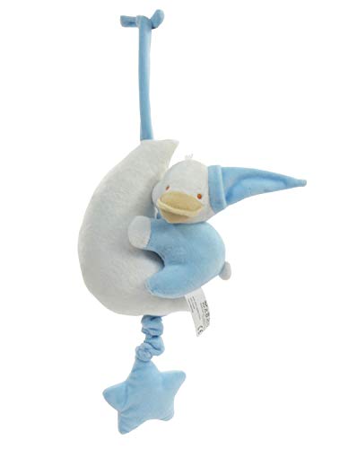 Kögler 20321 – Speldosa i mjuk leksak, anka med månen i blå, ca 46 x 17 cm stor, gosig mjuk sömnhjälp för spädbarn, spelar en lugnande melodi, perfekt för säng och barnvagn