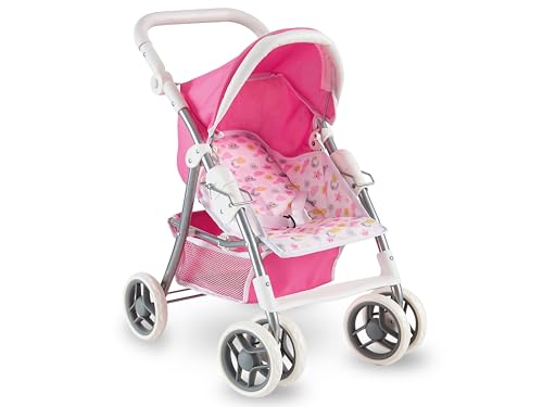 Teorema Giocattoli Lätt och vikbar dockbarnvagn, dockvagn med justerbar huva, förvaringskorg, metallram, barnvagn leksak för flickor manövrerbar, rosa