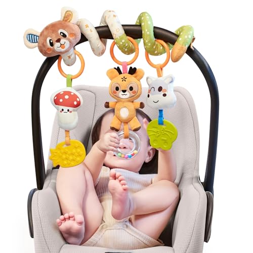 TUMAMA Babybåge, barnvagn med spiralleksak, baby 0 3 6 9 12 månader, babybåge, barnsäng, leksak, bilstol, klämma, lekbåge, på språng sensorisk skallra leksak, gåva, nyfödd småbarn