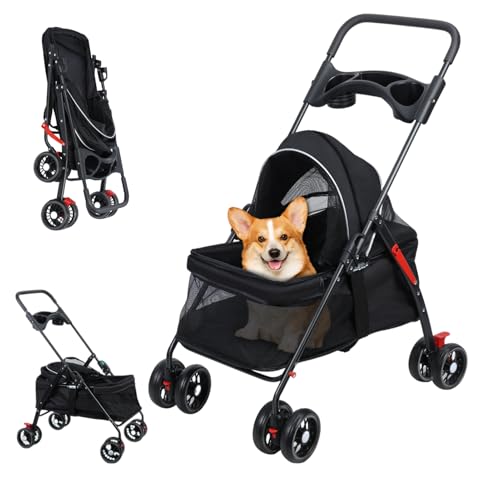 Husdjursvagn för hundar och katter, vikbar resesagn, kattjoggare barnvagn med hjul, kopphållare, justerbar baldakin, stor förvaringskorg och synligt nät, för små till medelstora husdjur 1 set