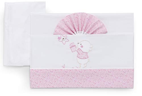 Filet barnvagn sängkläder 70 x 90 cm 3-delat set av 100% bomull med Aida-inlägg, för påfyllning – vit, rosa