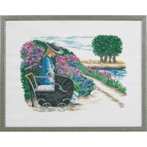 Eva Rosenstativ korsstygn set flicka med barnvagn räkningsmönster