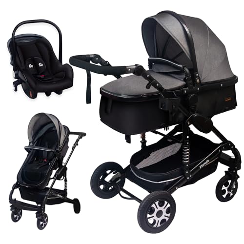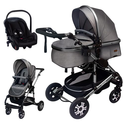 Bebby 3-i-1-barnvagn, kombibarnvagn, 2-i-1-set, hopfällbar, bärbar, resesystem, för nyfödd, för höglänta områden (D2-djupgrå)