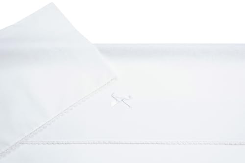 Filet - 3 delar enfärgad vit barnvagn underlakan set, 1 underlakan med hörn, 1 överlakan med canvasband Aida broderi och 1 örngott, tillverkat i Italien, vitt