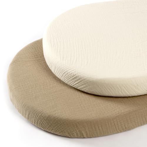 lulumoon Musselin Vagga dra-på-lakan set: barnvagn madrasskydd för sidosäng och vagga 100% bomull 90 x 40 cm 2-pack (vitgul)