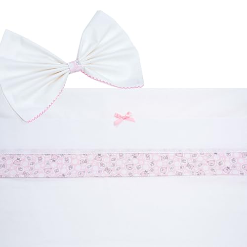 Filet - 3-delat set för barnvagn, anpassningsbar Leznuolo med canvasband broderi underdel med elastiska band + örngott, tillverkad i Italien, vit och rosa