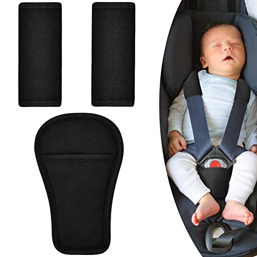 AOMIG Bältesdynor för Barn, 3 Kuddar Set Bältesskydd Bilsäkerhetsbälte Axelkuddar, Svarta Universella Bältesskydd och Bältesskydd Bältesskydd för Bilbarnstol, Barnvagn, Barnvagn och Bilbarnstol
