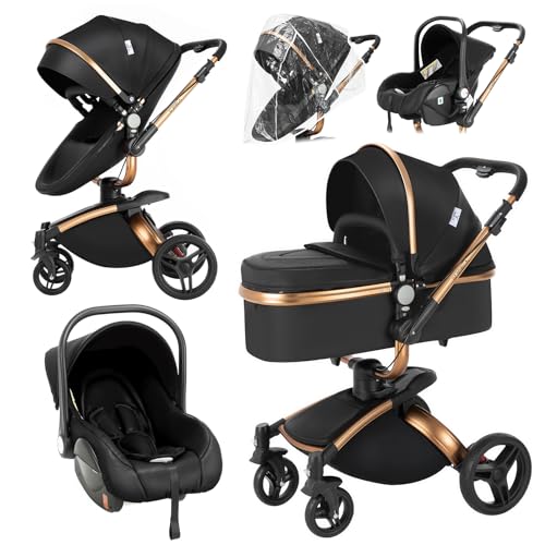 Standardvagnar Barnvagn 3-i-1 trehjuling baby Walker hög landskap barnvagn hopfällbar barnvagn babyvagn babyvagn för baby 0-36 (Svart)