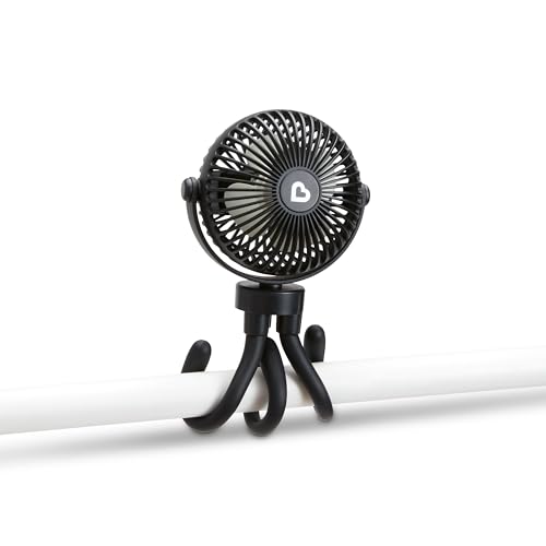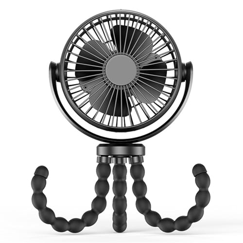 GUSGU Barnvagnsfläkt med klämma, flexibel tripod & uppladdningsbart batteri, liten personlig fläkt, mini portabel fläkt för resor, handhållen, bil (Svart)