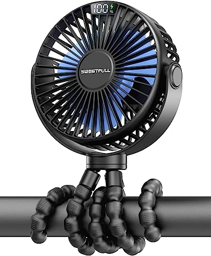 5 000 mAh bärbar barnvagnsfläkt med LCD-skärm | 5 hastigheter 360° rotation stativklämma | lång batteritid för barnvagnar, bilstolar, rullstolar, sovrum och resor