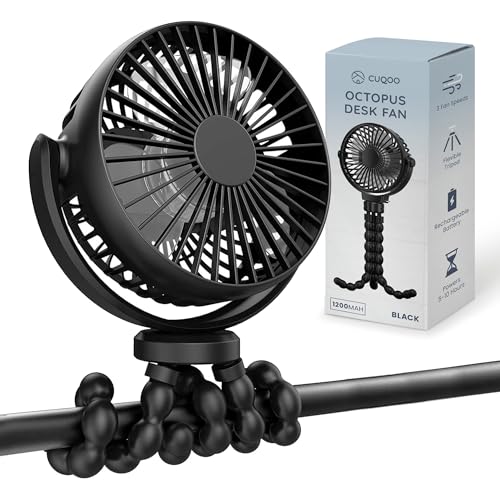 CUQOO Mini bärbar barnvagnsfläkt – uppladdningsbar bläckfiskfläkt för barnvagnar med 3 justerbara hastigheter, flexibel stativfläkt för bilstolar, spjälsängar, kontorsrum, löpband, gym och resor –