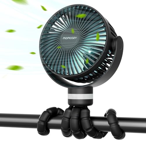 momcozy 8 000 mAh bärbar barnvagnsfläkt, 27 timmars batteritid klippfläkt, 360° avtagbar 4 hastigheter, LED-nattljus, uppladdningsbar USB-fläkt, resor, bilstol, kontor