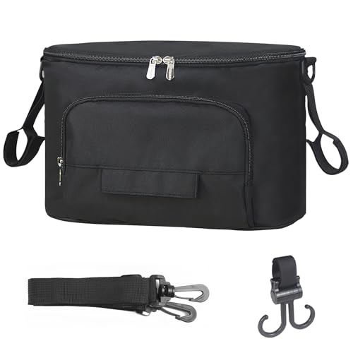 PHILORN Barnvagnsförvaring med isolerad mugghållare, axelrem, stor kapacitet, universell babybarnvagnsväska, skötväska, barnvagnsväska, barn buggy arrangör för babysaker, svart