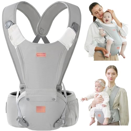 Bebamour Höftstol bärsele 0-36 månader, lätt, justerbar ryggstödande midjepall, 3 i 1 bärsele Nyfödd till småbarnsstol(New Light Grey)