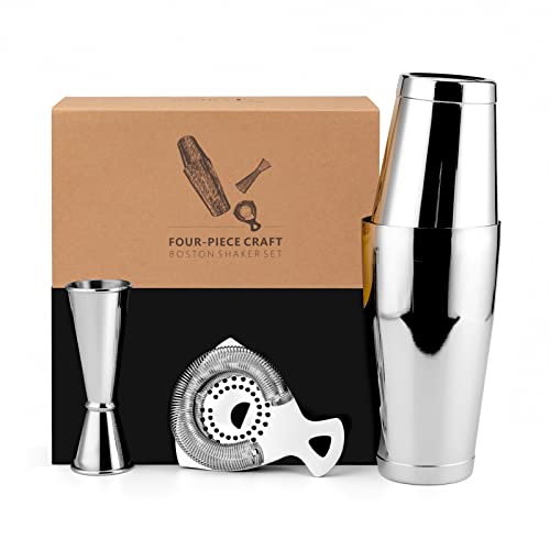 Jettory Boston Shaker Set – 4-delad Cocktail Shaker Set i Rostfritt Stål med 18/28 oz Shaker, Barsil och Mätkopp – Perfekt Presentförpackning för Hemmabruk (Silver)