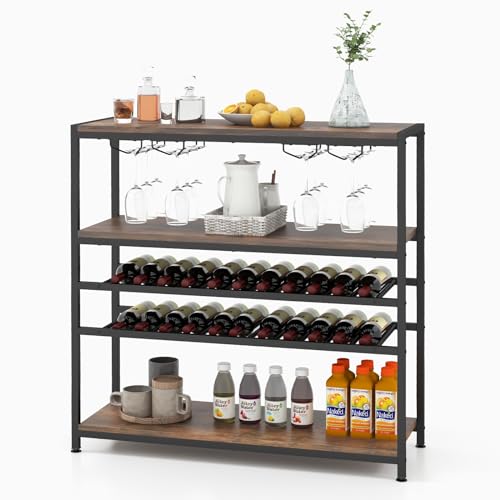 Tribesigns 2 st fristående golvhylla – 5-nivås vinhylla med glashållare och förvaring, industriellt barskåp för kök, matsal (rostbrun)