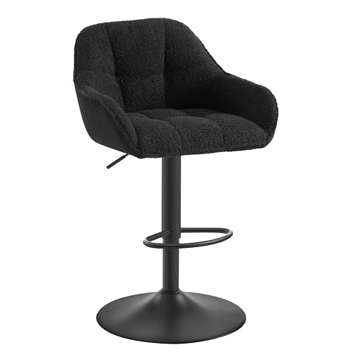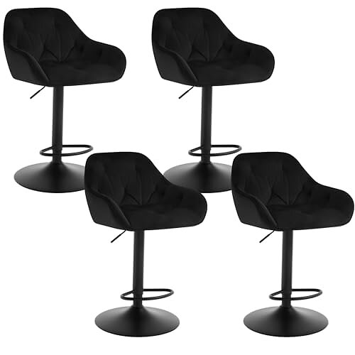 chairus Barstol uppsättning av 2 sammet, barstol justerbar höjd modern diskpall med ryggstöd kökspall roterbar för kök, disk, svart
