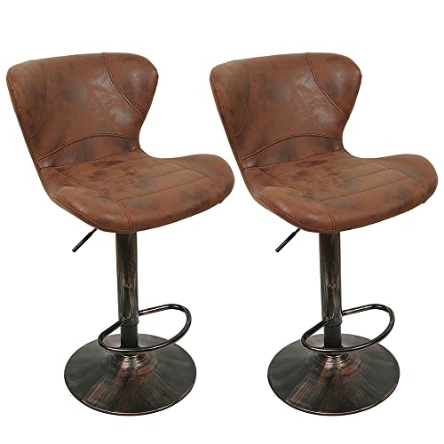 STOOLINK Barstolar, set om 2, barstol, justerbar höjd med mikrofiberläder, barstol med ryggstöd, vridbar diskstol, bistropall, designer, barstolar för kök, bar/bar/brun