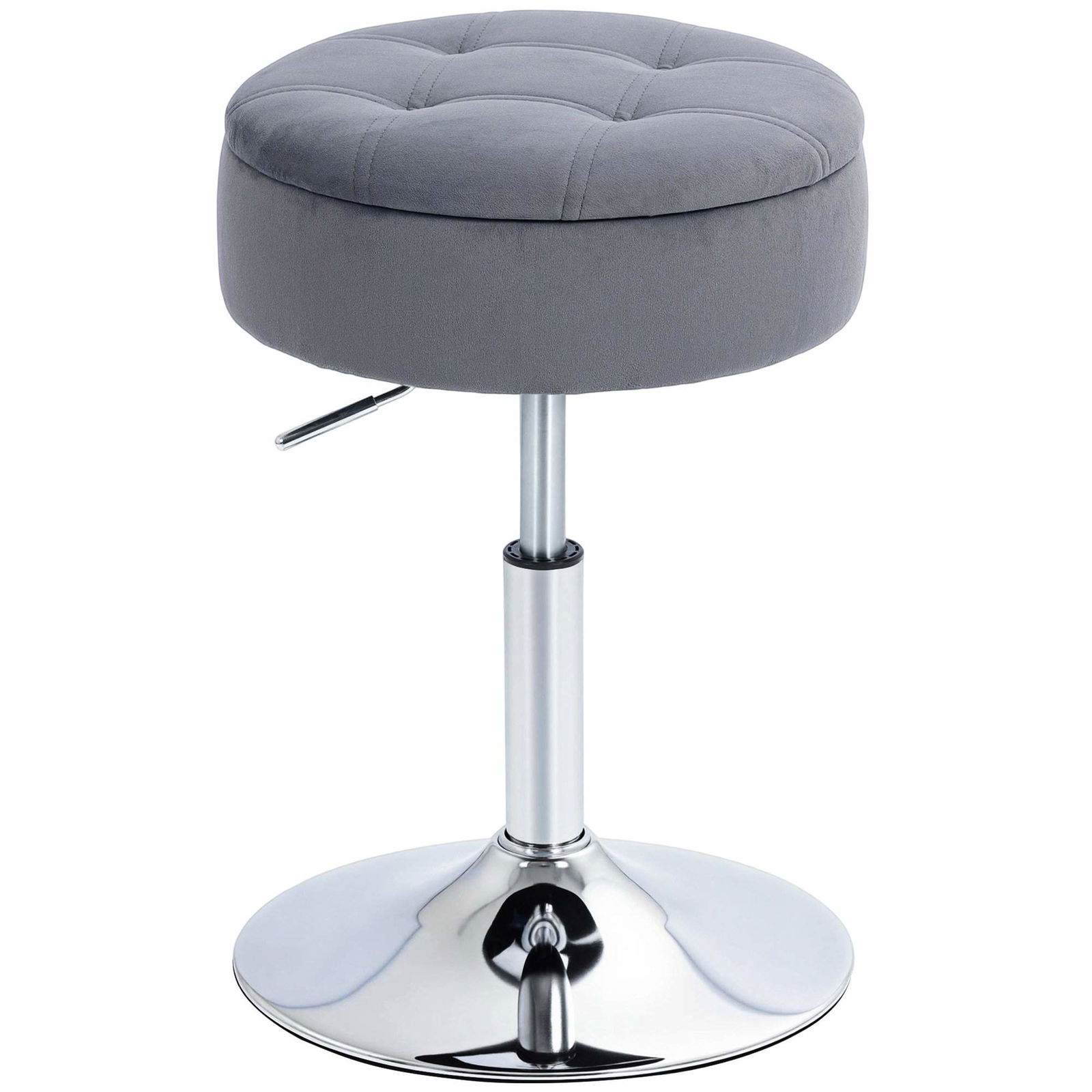 Justerbar barstol i sammet med förvaring, 360 graders vridbar, grå