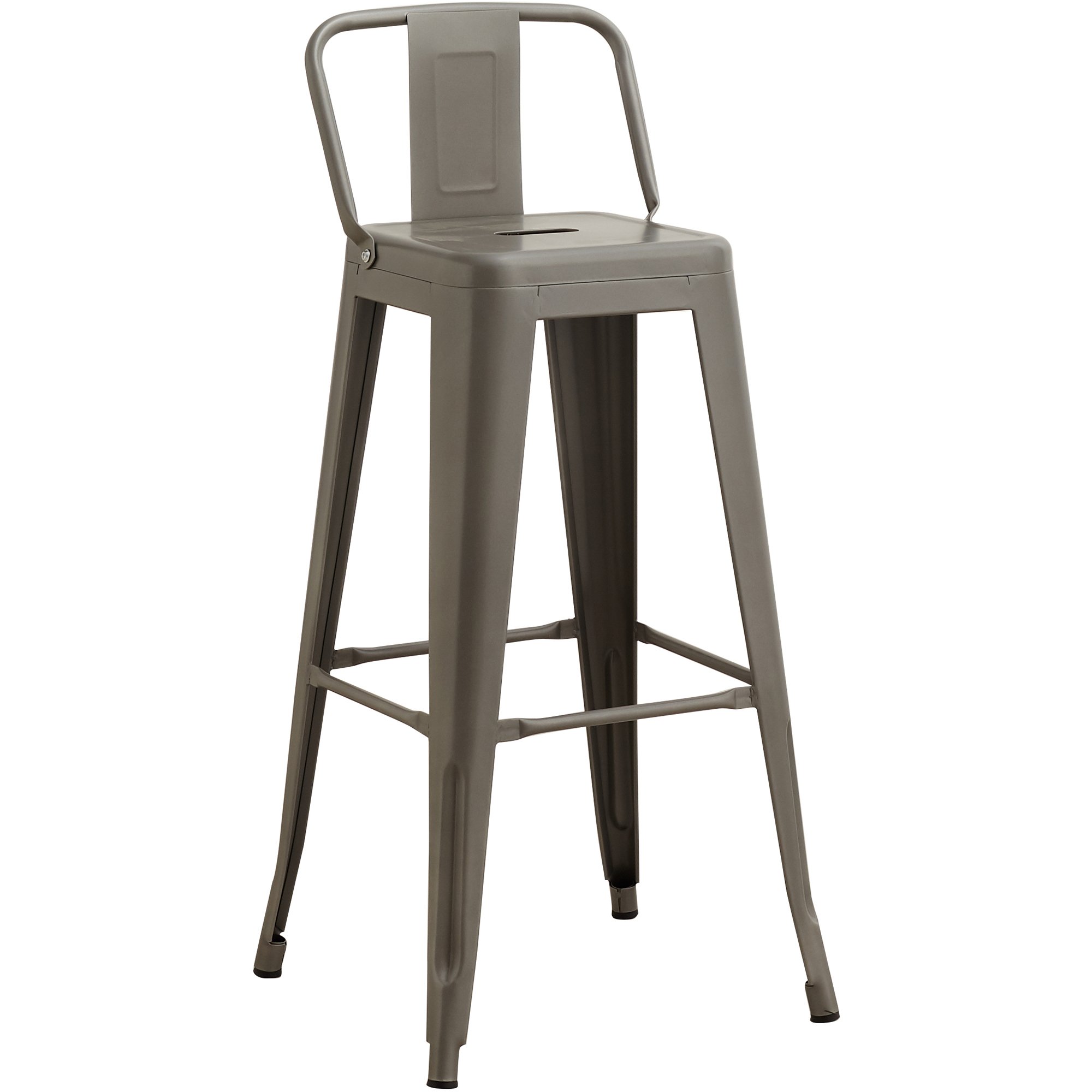 Barstol med ryggstöd Industriell design Stålplåt Grå metall Utomhus/Inomhusbruk | Adexa WW62DG