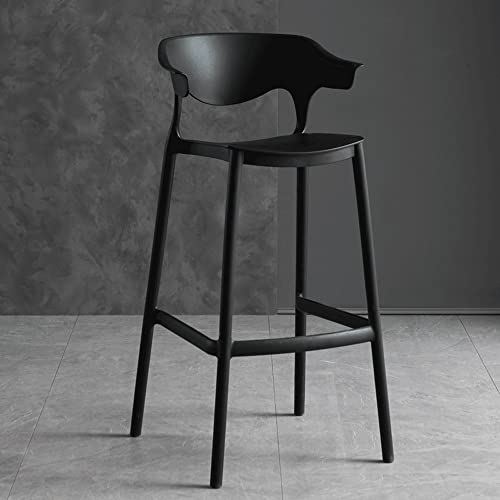 PASGON Ryggstöd i plast barstol köksbänk stolar stapelbar hög fot barpall hem vardagsrum trädgård pub utomhus fritid barpall (färg: svart, storlek: 75 cm/29,5 tum)