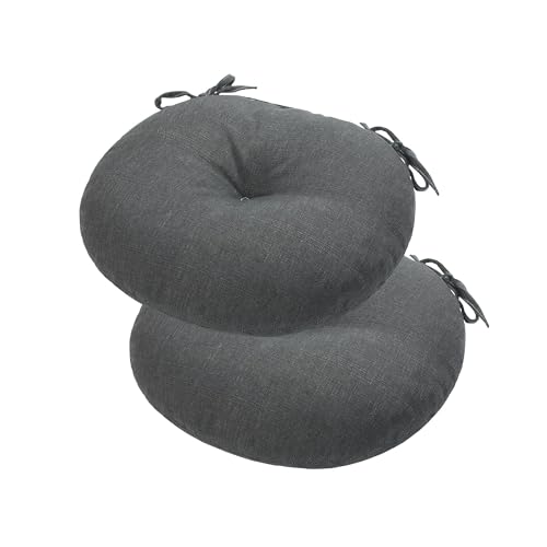 FUNHOME Bistro stolskuddar med knytband, tuftad uteplats runda sittplatser utomhus 38 cm x 35 cm x 10 cm, set med 2, vattentäta stolkuddar för barstol hem trädgård köksmöbler (kolgrå)