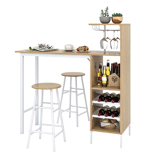 LIFEZEAL Bbordsset, skåp med 2 barstolar, matbord ståbord med vinglashållare och hylla, köksbänk, bistrobord, industriell design, ståbord för bar, bistro- och vardagsrum (natur)