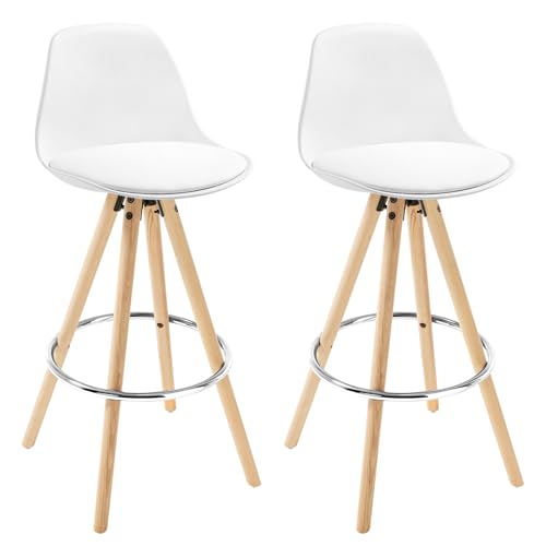 WOLTU 2 x barstolar set om 2 barstolar av plast träram med ryggstöd + fotstöd design stol köksstol optimal komfort vit
