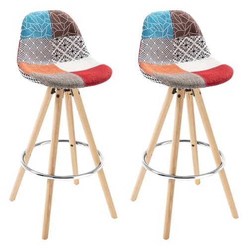 WOLTU 2 x barstolar set med 2 barstolar gjorda av linne träram med ryggstöd + fotstöd design stol köksstol optimal komfort lapptäcke flerfärgad BH45mf-2