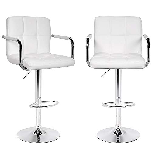 Set med 2 barstolar kök säte och ryggstöd i konstläder krom metallbas med fotstöd och armstöd pall modern design roterbar höjd justerbar (vit)