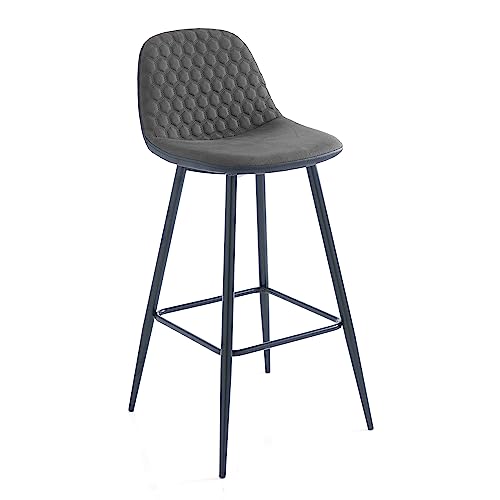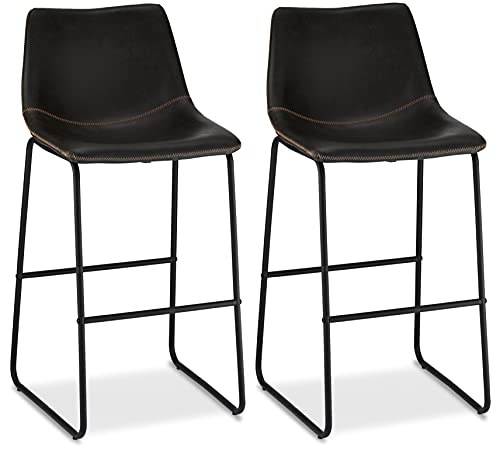 Ibbe Design Set med 2 Svart Barstolar Barstol med Fotstöd Indiana, Fuskläder Metallben, 46x54x97 cm