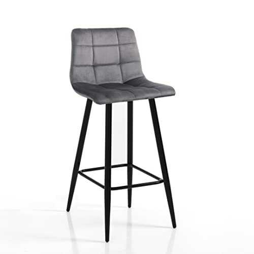 Bakaji Set 2 Barstolar Kök Design Modern Förkromad stålbas ABS sits Vridbar pall med justerbar höjd och fotstöd (grå)