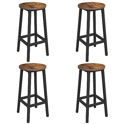 VASAGLE barstol, uppsättning av 4 barstolar, köksstolar med stålram, höjd 65 cm, rund, enkel montering, industriell design, vintage brun-svart LBC232B01