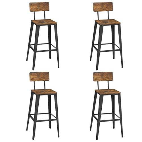 VASAGLE Barstol, set om 4, barstolar, köksstolar, med ryggstöd, stålram, enkel installation, industriell design, vintage bläcksvart LBC278B01