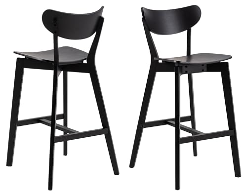 AC design furniture Roxanne barstolar set om 2 med sits av ekfanér och svarta träben, barnstol i modern retrostil, barmöbler, köksmöbler, B: 45 x H: 105 x D: 49 cm