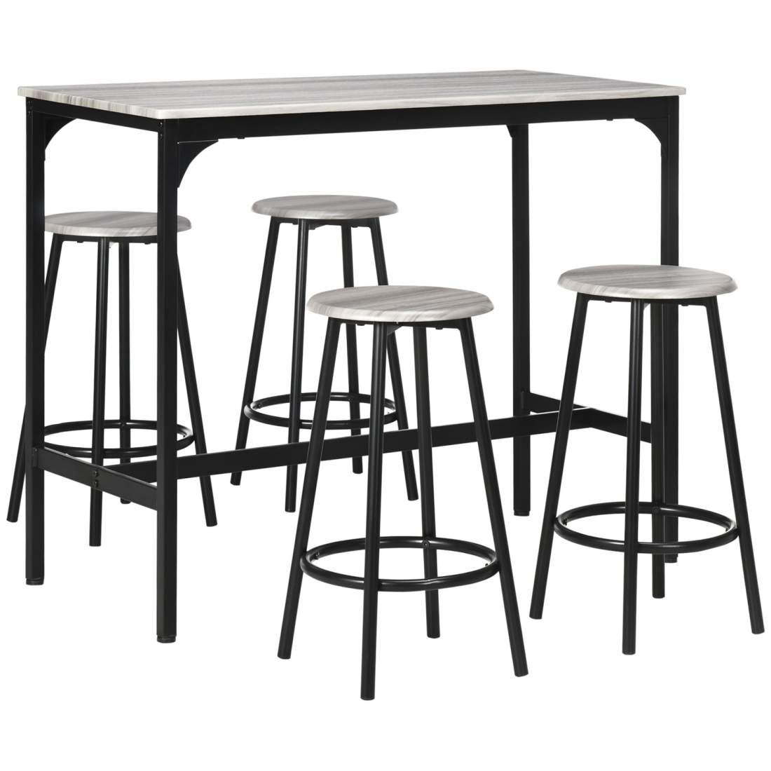 Barbord med barstolsset, 5 st. Barbordsset Köksbord med 4 barstolar Industriell design Matstället Köksmatsalen Metallgrå