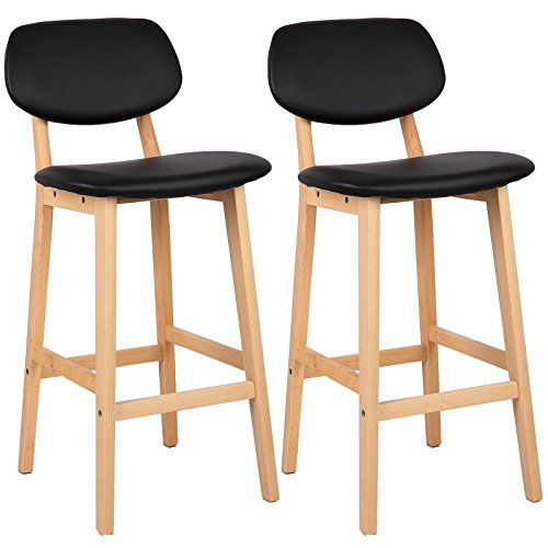 WOLTU 2 x barstolar set med 2 barstolar väl vadderad sits och ryggstöd gjorda av konstläder design stol trä svart