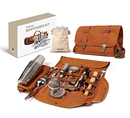 Bartenderväska rese bartender kit professionell bartender verktygsväska bärbar cocktail läderfodral med 20 bar verktygssats som liknar portfölj för barendending på barer hus fest reseläger