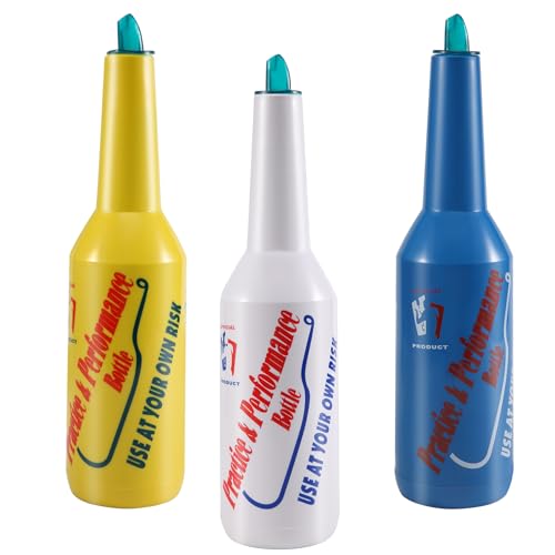 Gokelomg 3 x Flair Bottle, cocktailshaker, Flair Bartender Mix Color Set, äningsflaska, bartender övnings- och effektflaska 750 ml (vit, blå)