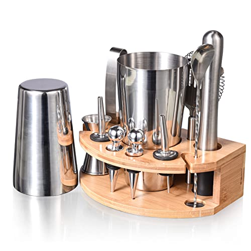 AOKITO Cocktail Shaker Kit, 12 delar rostfritt stål Cocktail Bartender Set, 750 ml Cocktail Shaker, Bartender Cocktail Kit med träställ för hem eller bar Pengar