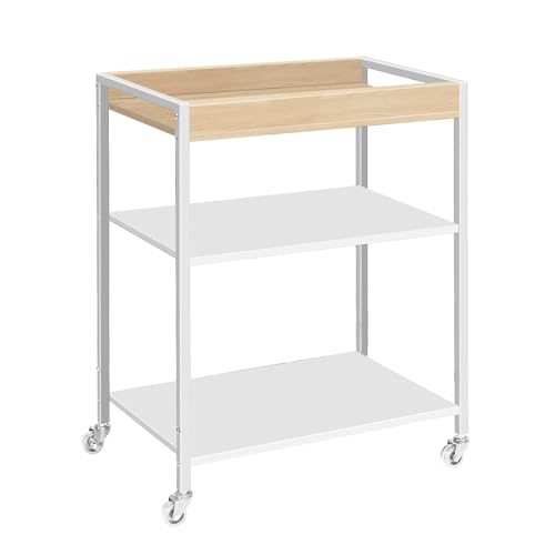 HOOBRO Serveringsvagn med 3 våningar, rullvagn med skyddskanter, köksvagn, kökshylla, barvagn 64 x 40 x 85 cm, för matsal, vardagsrum, bar, vit och träfärg EWN64TC01