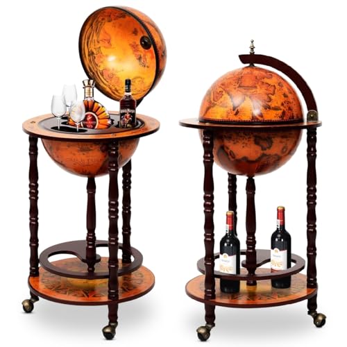 COSTWAY Klot jordglob, barvagn retro, glob bar på hjul, 2 nivåer husbar, serveringsvagn trä, vinställ, vinställ för vin, sprit, drycker